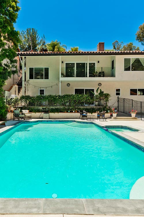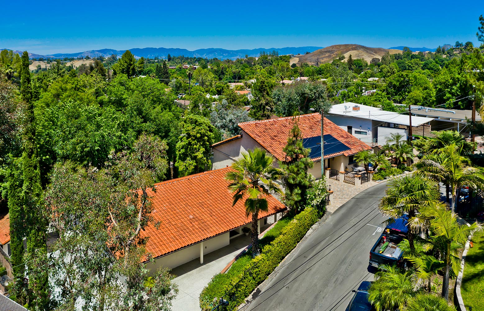 Modern, luxury 4 bedroom home south of the boulevard in prime Woodland Hills. Located just above the coveted Serrania Elementary School. Open plan living and dining room perfect for entertaining guests. 2 bedrooms, including master, and 2 bathrooms (one full bath & one 3/4 bath) are also located on main level. Sip your morning coffee on the balcony while enjoying the treetop and pool views. Downstairs takes you to 2 additional bedrooms and a 3/4 bath, a spacious lounge area equipped with a bar, fireplace laundry room and direct access to the large patio and pool area as well as oversized two car detached garage with plug-in for an electric car. Located within minutes of Westfield Topanga Mall, The Village, Costco, Calabasas, and the 101 freeway. With Whole Foods and Trader Joe's less than a mile away as well as restaurants and bars along Ventura Blvd. No showings in person until buyer has viewed the 3D tour, provided a pre approval letter and a signed PEAD form.